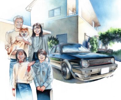 未分類 オーダー車イラスト Volkswagen ゴルフⅡ gti 個人のお客様よりご依頼をいただき、娘様からお父様への贈り物として、愛車とご家族の皆様、そしてご自宅を描かせていただきました。 ご家族のかけがえのない思い出の一枚をお任せいただき、ありがとうございました。 2026.04.09 未分類